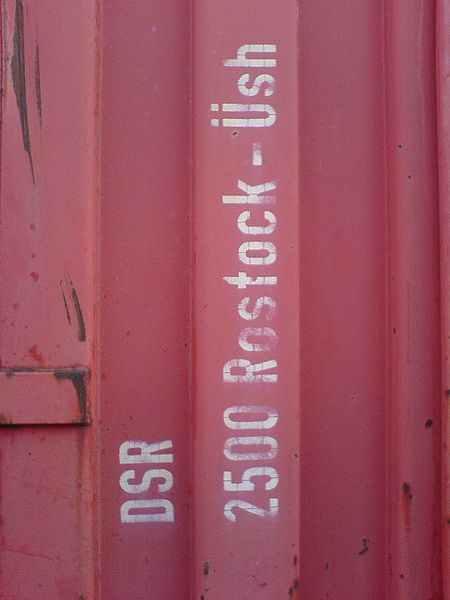 Container der DDR mit Aufschrift VEB Deutfracht/Seerederei Rostock-Überseehafen